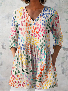 This long blouse is made for just those kinds of days. The fabric feels light and flowy, draping loosely along the body and giving you the freedom that's pleasant when the season changes. The longer length provides extra comfort around the waist and hips, while the fit flatters without being tight. You put it on, and your outfit looks great immediately — whether you're stepping out for a moment, have an appointment, or are simply looking for something nice for the upcoming sunny months.